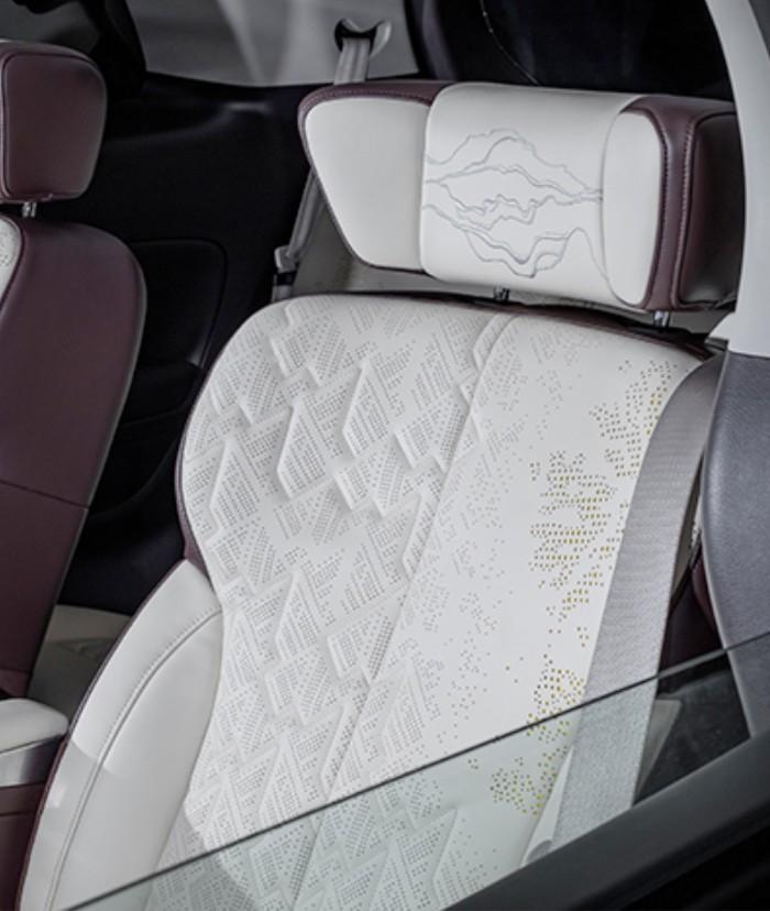 Elements are extracted from symbols of auspiciousness, abstract dragon patterns, and mountain and sea cloud patterns, and are used in the vehicle interior design. It combines a variety of craft expressions to closely combine traditional culture with modern industrial products, creating a majestic, elegant and dignified design.